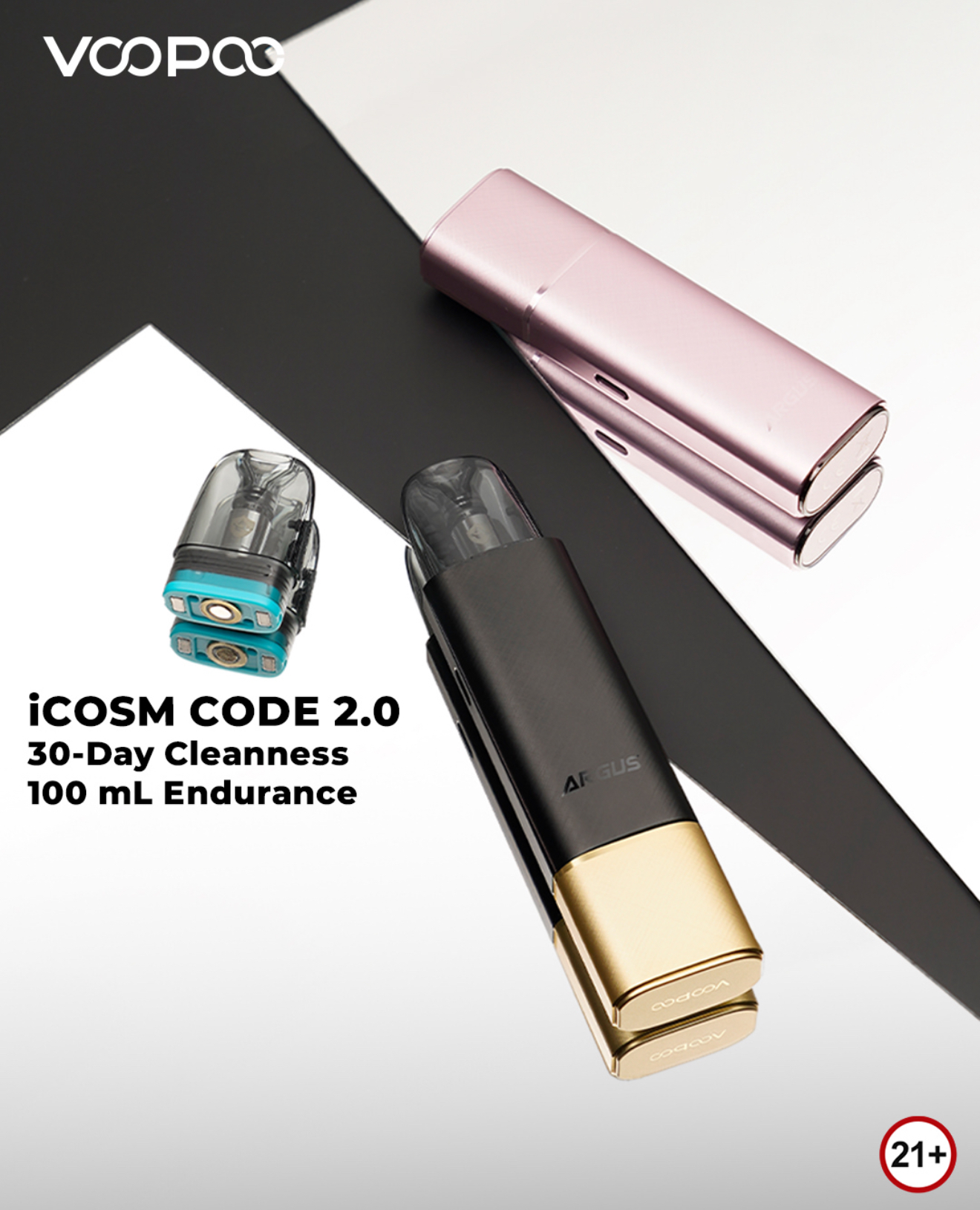 Compact yet capable pod system with top-fill, side airflow, and iCOSM CODE 2.0 — precise from MTL to RDL.